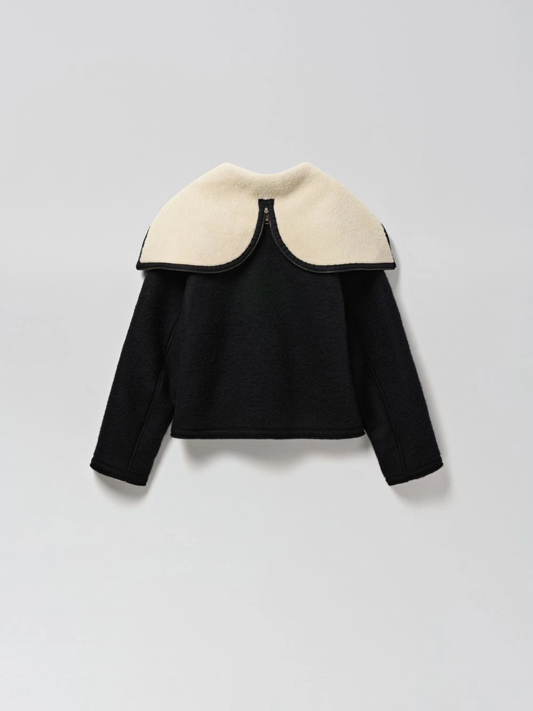 - Felted wool and fleece fur hooded jacket