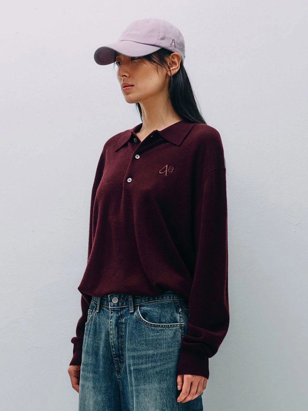 NONYMOUS Aa Wool-Cash Polo Shirt - BURGUNDY (AADCSC0010BX)SALE